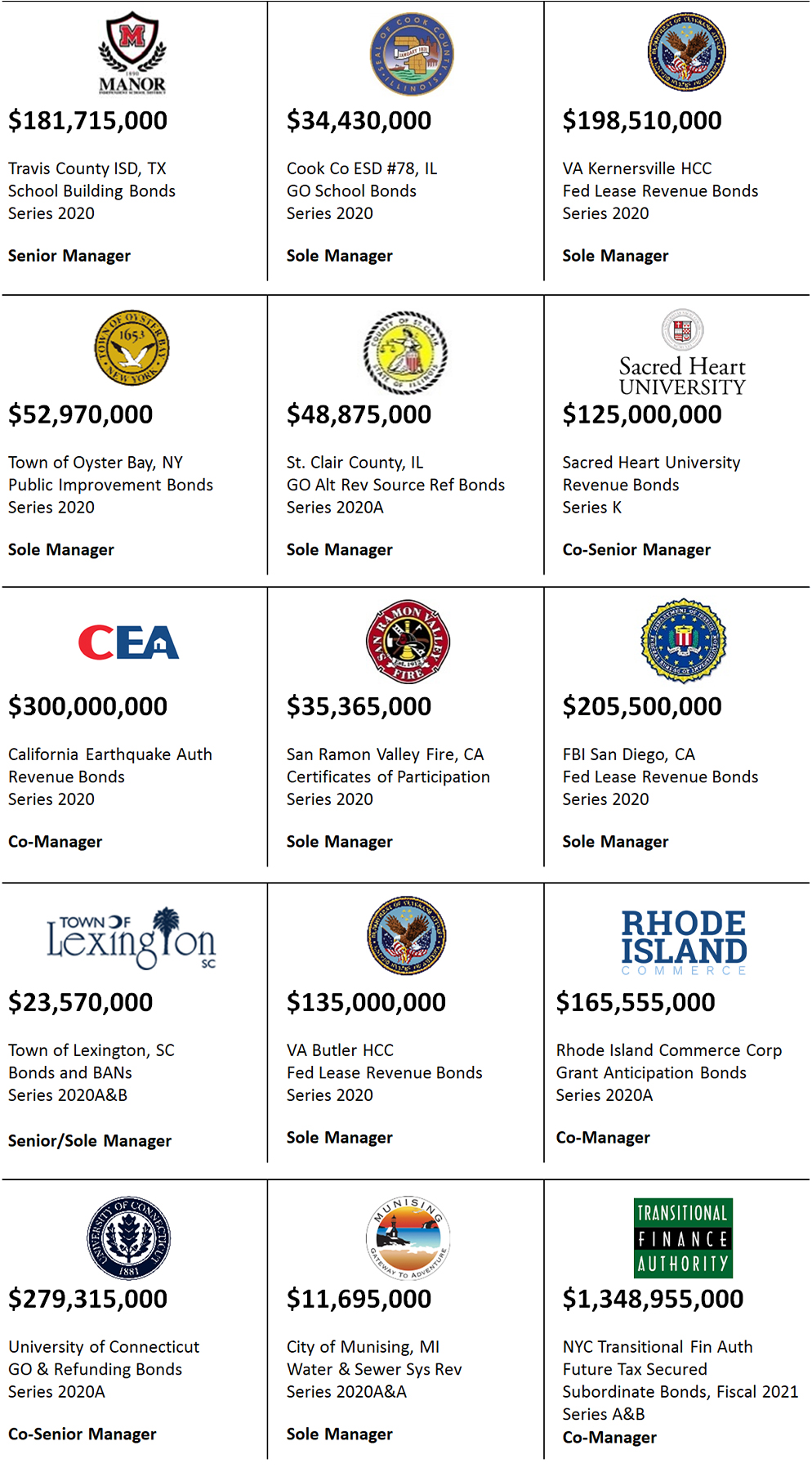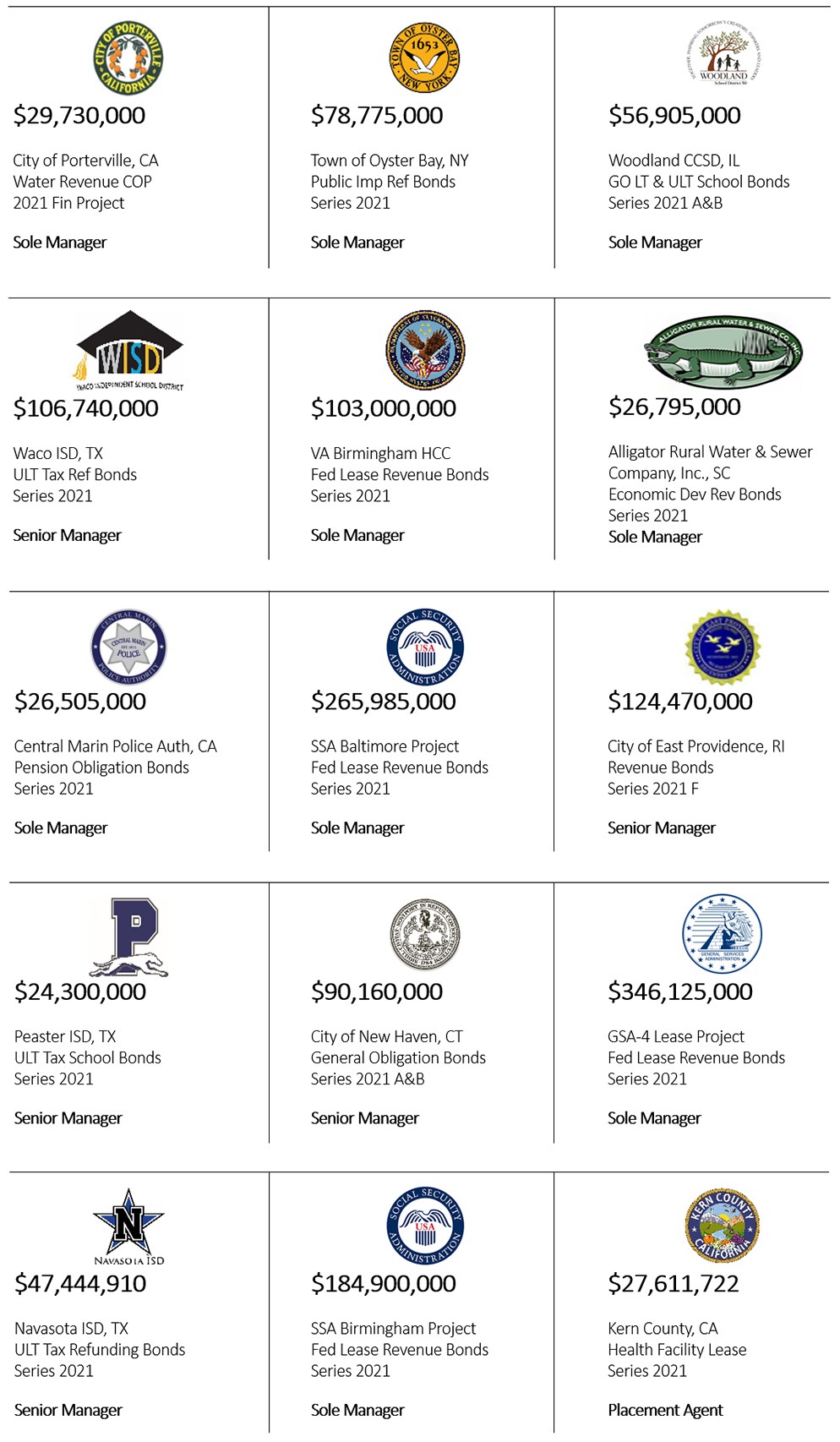 Public Finance Selected Transactions | Aurum Capital